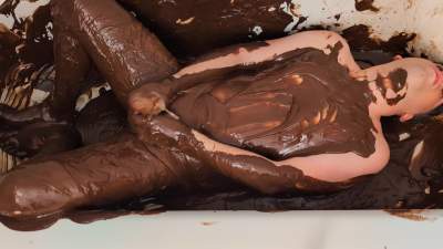 The human male subject is given a large pile of thick chocolate batter, coated with a sprinkling of powder to give it the illusion of being solid, however, once his bare feet pressed down onto it, he'd sink into the dark brown ooze, the batter pushing up between his toes. The subject plays around, mixing up the batter, squishing it between his feet and turning the thick chunky mixture into a smooth batter. More to come...